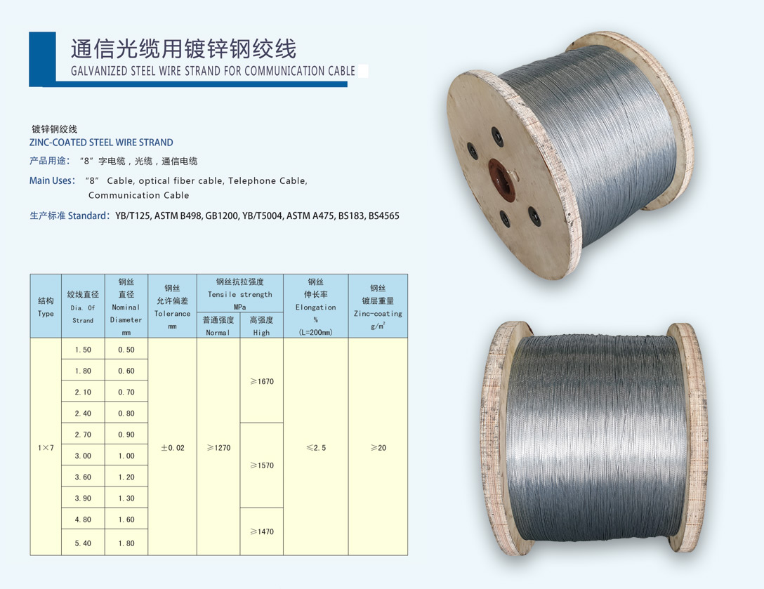 通信光電纜用鍍鋅鋼絲通信光電纜用鍍鋅鋼絞線機編鋼絲網用鍍層鋼絲防振錘用鋼絞線一般用途鍍鋅及鍍鋅鋁合金鍍層鋼絲及鋼絞線預絞式金具用鍍層鋼絲制釘用鍍層鋼絲