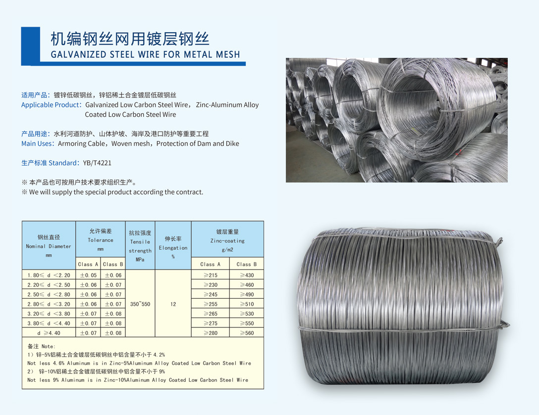 • 機編鋼絲網用鍍層鋼絲